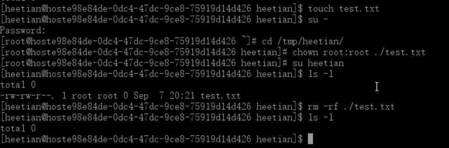 举例:改变/tmp/heetian 的拥有者为heetian这个用户,看图操作。
