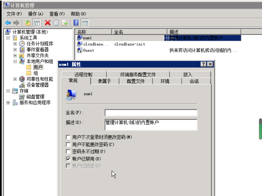 如果更改帐户名仍然无法满足安全需求,可以选择将其禁用,然后创建一个普通的管理员账户,用户实现基本的系统或者网络管理、维护功能。