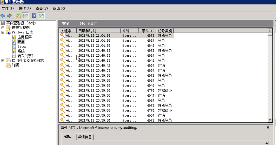 在安全日志中,记录着系统的登陆事件。