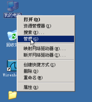 登录到实验主机上。右击“我的电脑”->“管理”,见下图: