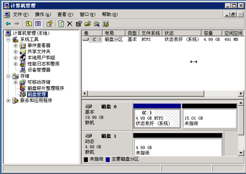 完成添加过程后会发现多了一块磁盘1,如下图: