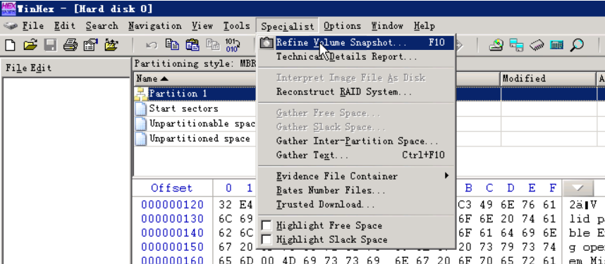 点击Specialist—>refine volume snapshot 获取卷快照,也可以按快捷键F10