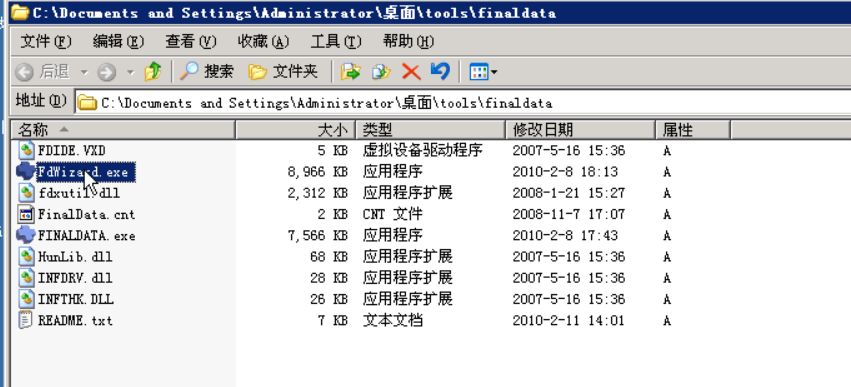 1、打开桌面上tools\finaldata文件夹,找到应用程序“FdWizard”