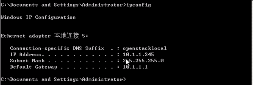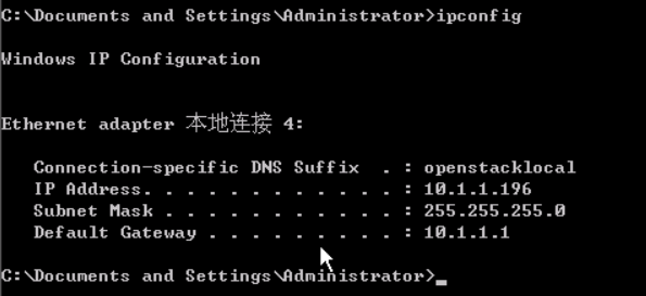 1、远程桌面方式登录到CA服务器,在CMD下查看本机IP地址: