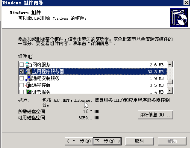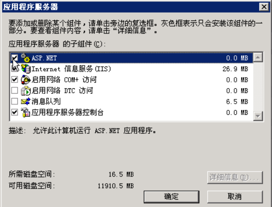 双击“应用程序服务器”,选中“ASP.NET”与“Internet信息服务(IIS)”,如下图: