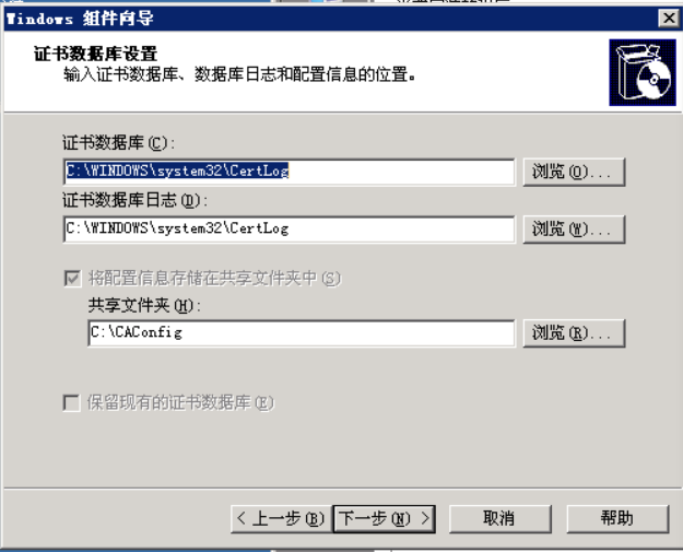 下一步后,会出现证书数据库的相关设置,不用修改,继续下一步: