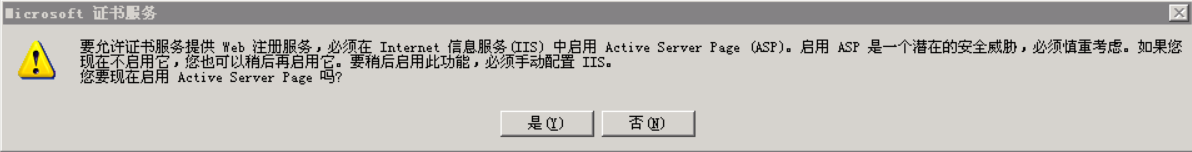在安装完成后会提示启用Active Server Page,点击“确定”