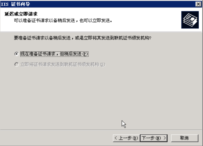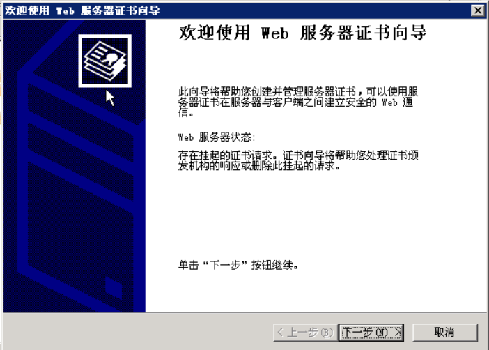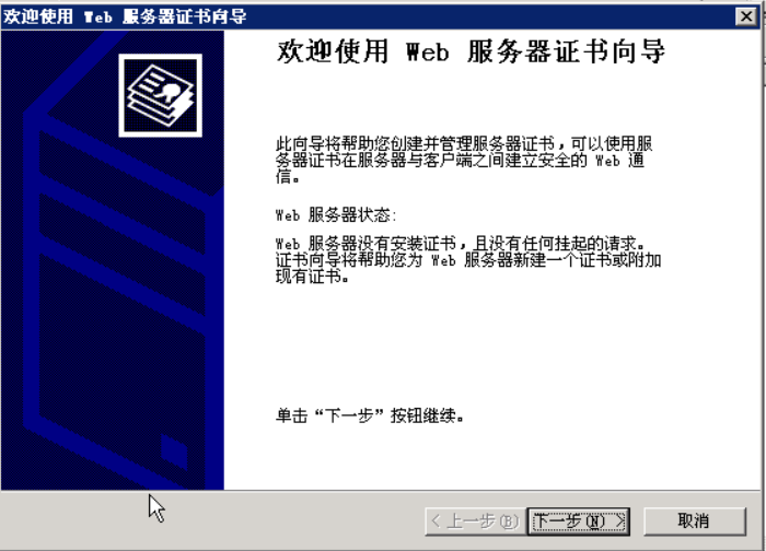 出现如下对话框,保持默认选项“新建证书”不动,继续下一步: