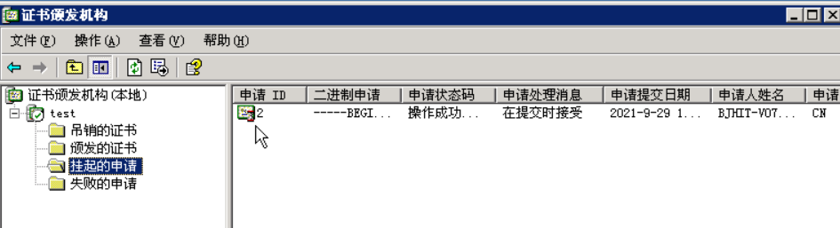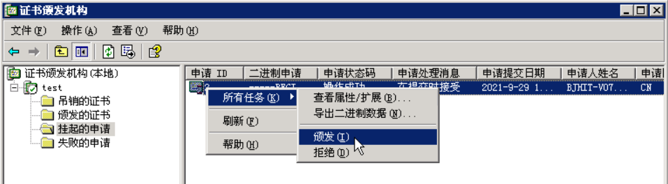 证书的颁发在证书服务器中操作,接下来的操作是证书审核员的角色,切换到CA服务器,点击“开始”>>“管理工具”>>“证书颁发机构”
