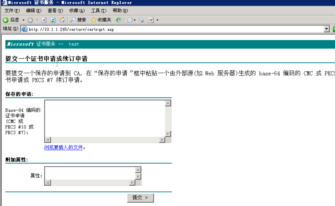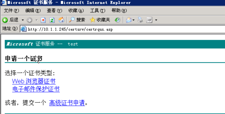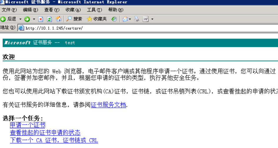 打开浏览器输入 http://10.1.1.245/certsrv/ 可以浏览证书服务器