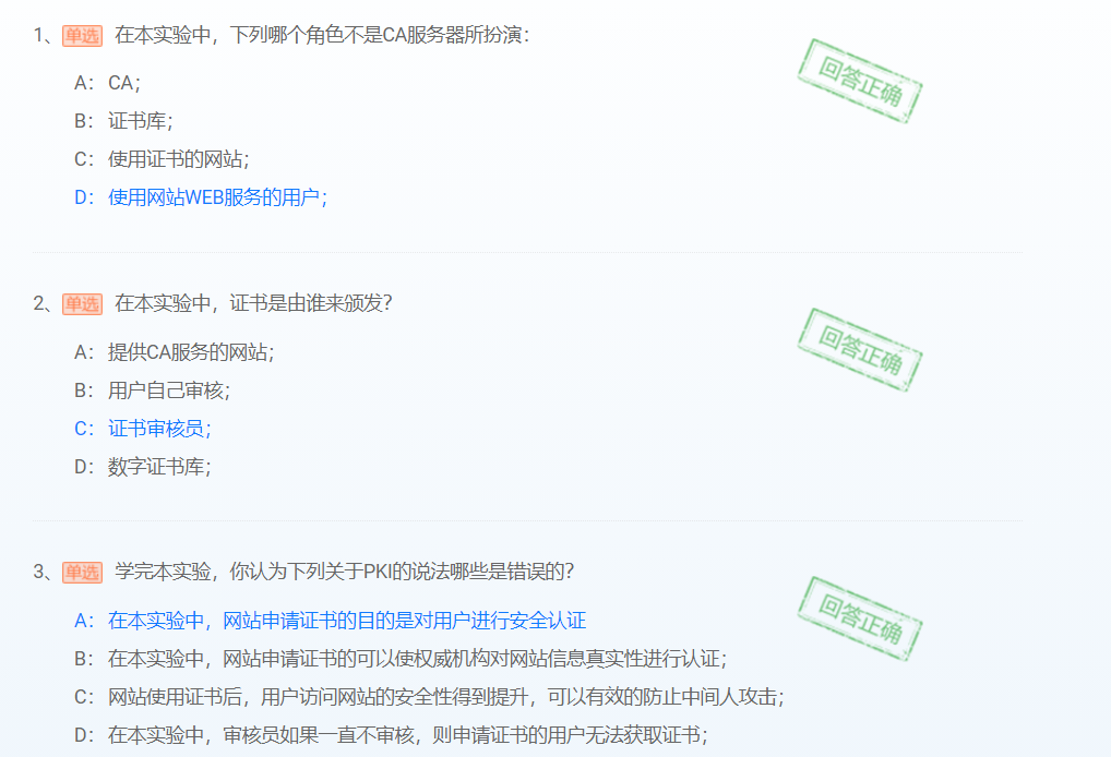 实验过程中建议使用IE浏览器,如果不使用IE,可能会导致后续实验过程中证书不能下载。