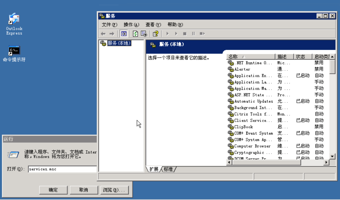 首先打开运行,输入tlntsvr /service,启动Telnet服务程序,再打开运行,输入services.msc,打开服务管理程序。