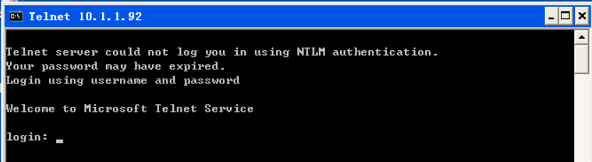 Client:到xp上,安装好Wireshark,然后Telnet server的IP,如telnet 10.1.1.92,然后就能看到欢迎界面