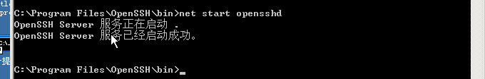 最后执行 net start opensshd,开启ssh服务。