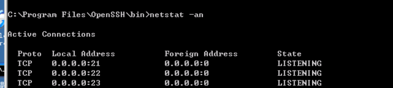 通过netstat –an查看23端口是否开放