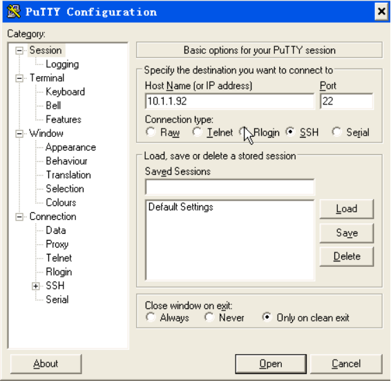 Client:打开putty,输入server的IP,点击open