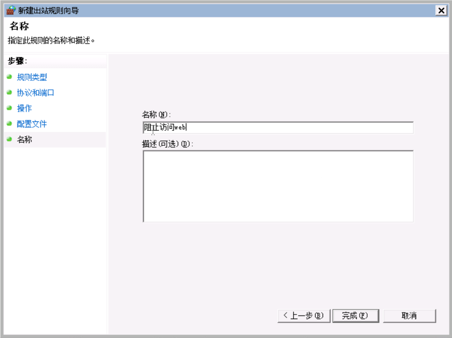 5)在“名称”界面,为该规则指定一个名称和描述。