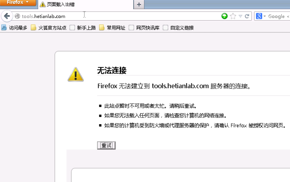 打开浏览器,输入刚才测试的网站,已无法访问。
