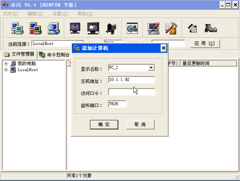 主机地址:填入服务器端主机的IP地址(10.1.1.92)