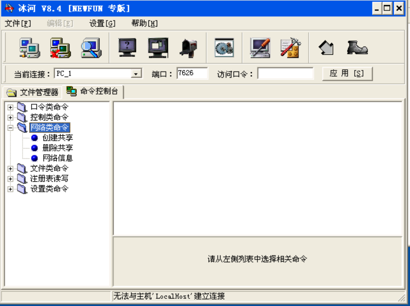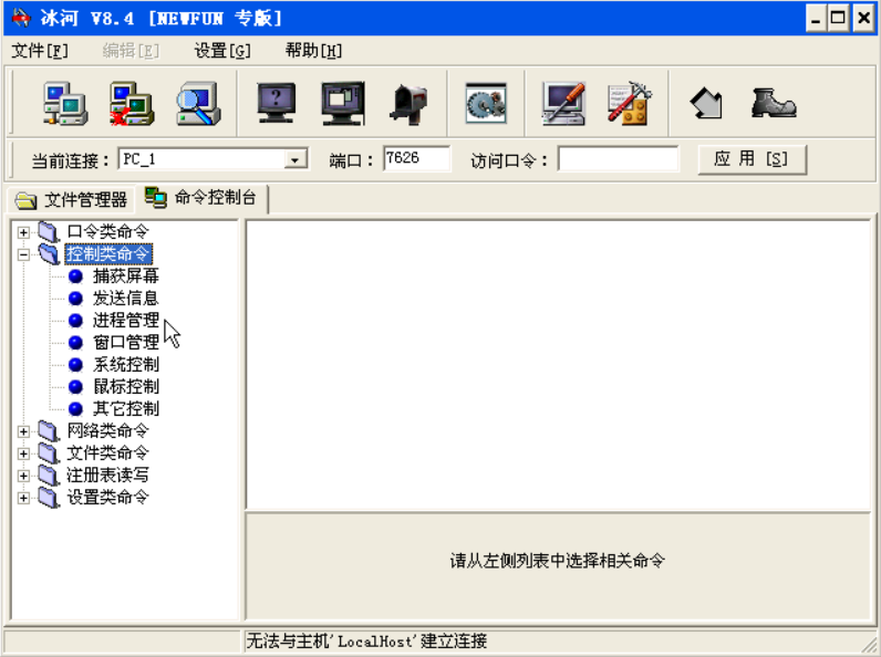 打开控制端G_CLIENT后,弹出“冰河”的主界面.如图3。