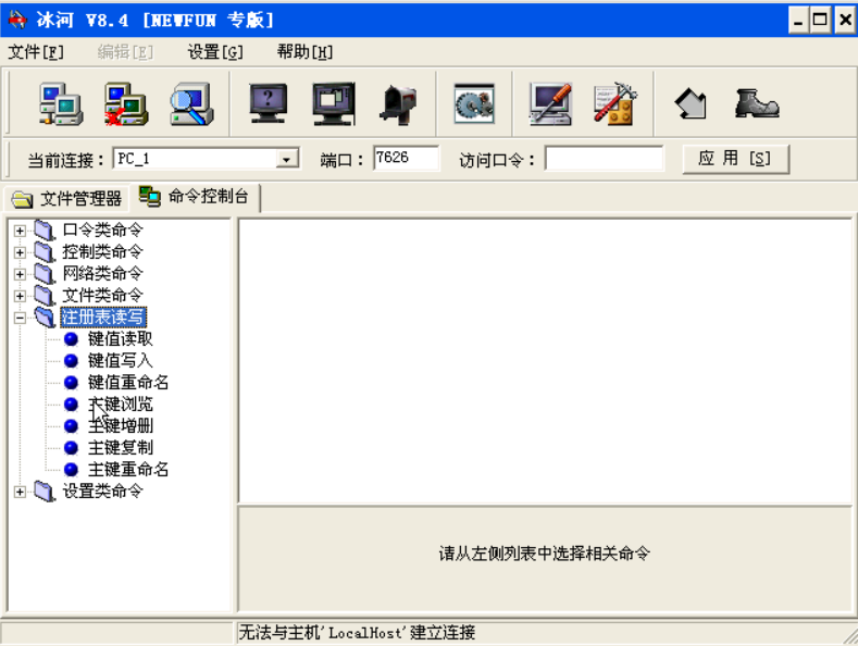 点击“命令控制台”,点击“注册表读写”前面的“+”即可展开“注册表读写”命令,如图12注册表读写。