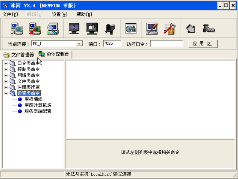 设置类命令提供了“更换墙纸”、“更改计算机名”、“服务器端配置”的功能,