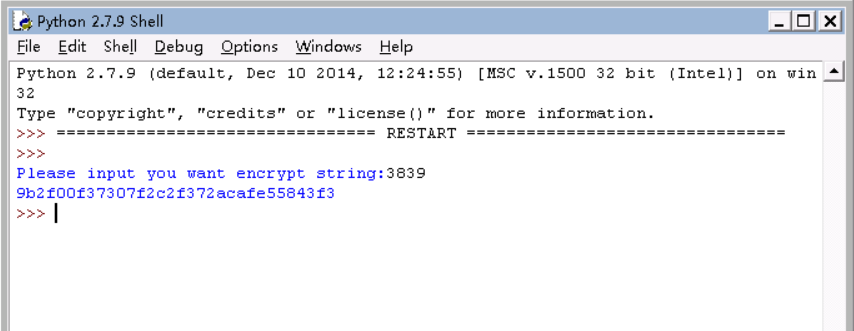 任务描述:使用任意一种语言,对特定的四位数字进行MD5加密(例如‘3839’),输出加密后的结果: