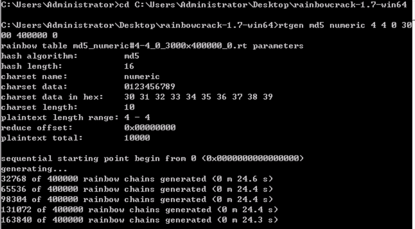 使用命令:rtgen md5 numeric 4 4 0 3000 400000 0