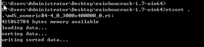 切勿中断rtsort程序; 否则被分类的彩虹表可能会被损坏。