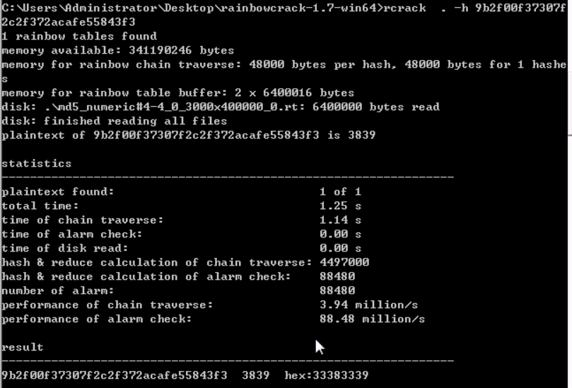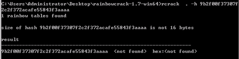对于单个的哈希值,我们可以直接用rcrack.exe . -h hashnum来进行破解: