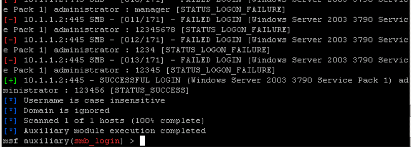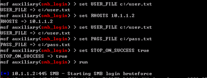 2、利用Metasploit扫描目标主机ipc的弱口令,操作如下图所示