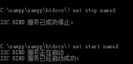 24、重启下dns服务,输入命令:net stop named和net start named,回车。