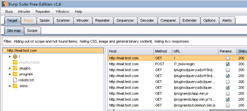 这里我们先使用burpsuite对该站点进行目录扫描。