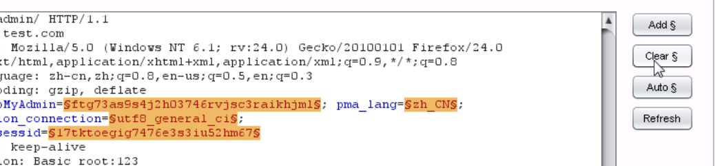 8、右键send to intruder,在Positions选项卡下单击clear$。