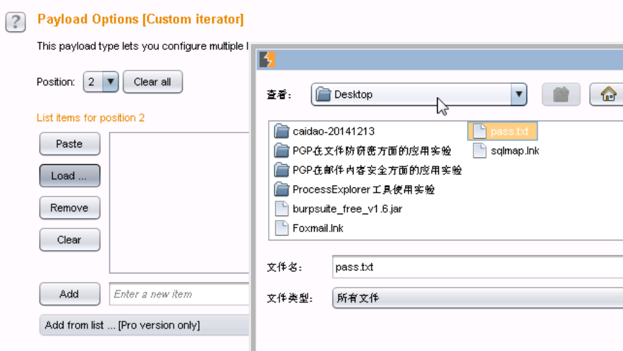 11、加载桌面上一个密码字典pass.txt,配置如下。
