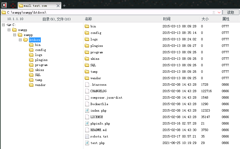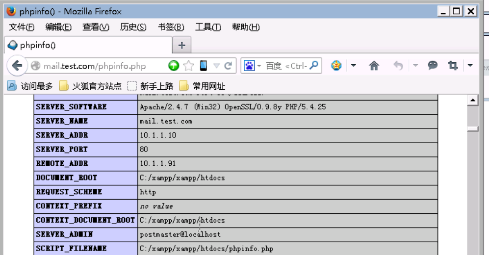 19、执行成功,访问下http://mail.test.com/test.php