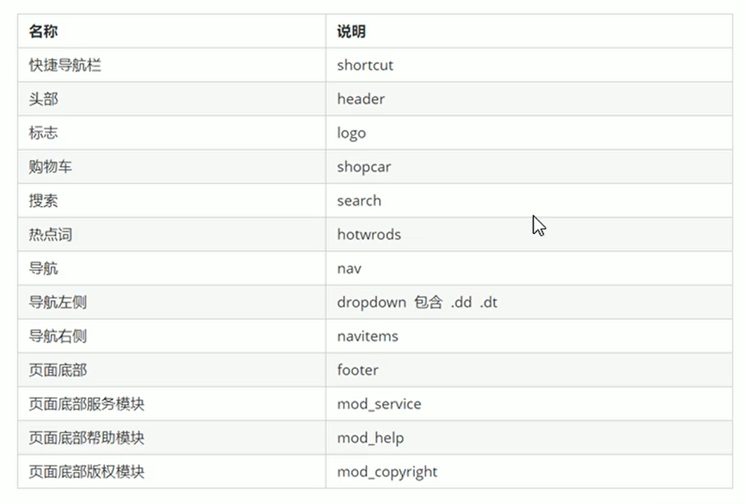 网页结构分块的约定俗成的类选择器