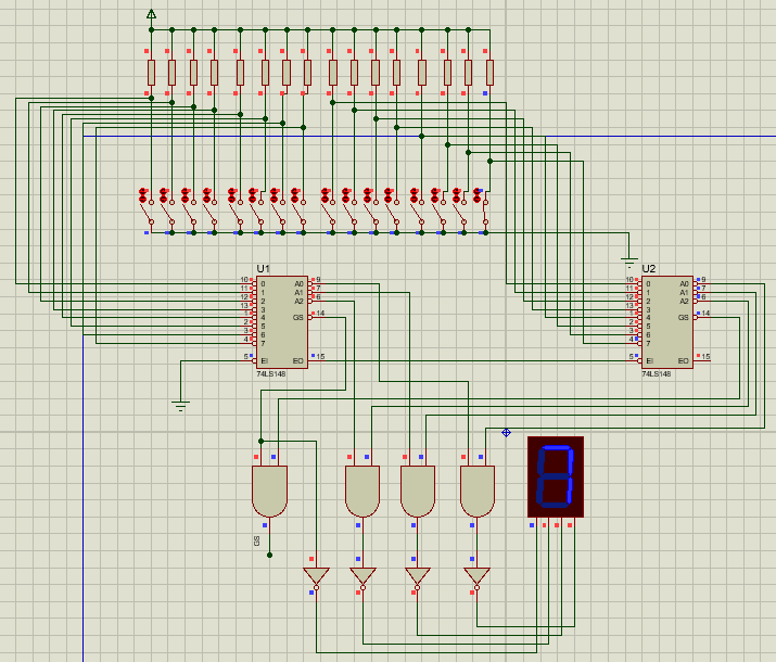 原本是要用优先编码器器CD4532来进行设计,它的逻辑也比较符合我的习惯,但是设计好后,发现仿真软件中没有这芯片,所以又采用了74ls148这个芯片来进行设计。但是其实区别不是很大,这两个芯片都是8线-3线优先编码器,但是他们的逻辑是相反的。