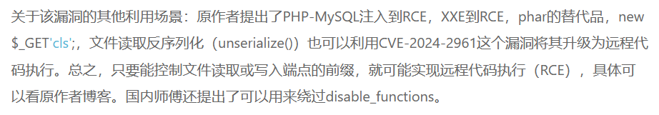 ,对文件读取的内容没有做任何过滤,在 PHP 中存在这样一个漏洞 RCE,它在非常多的位置都可能存在,详细参考 https://xz.aliyun.com/news/14986