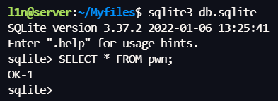 读取 ../db.sqlite,拿到本地读一下,看到 SQL 执行成功