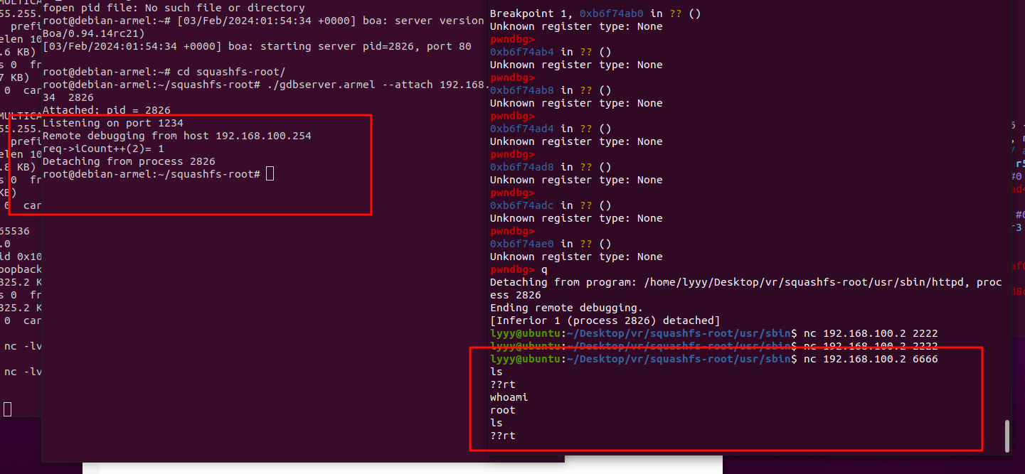 ./gdbserver.armel --attach 192.168.100.254:1234 2440