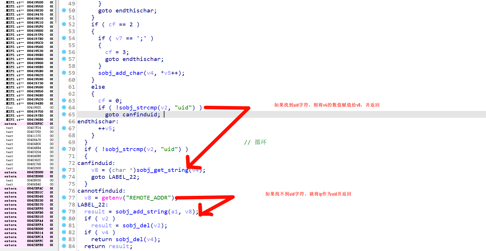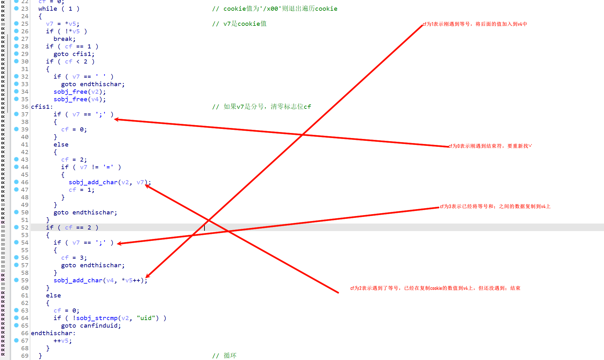 对cookie中进行遍历,将=和‘;’之间的数值赋值到v4上