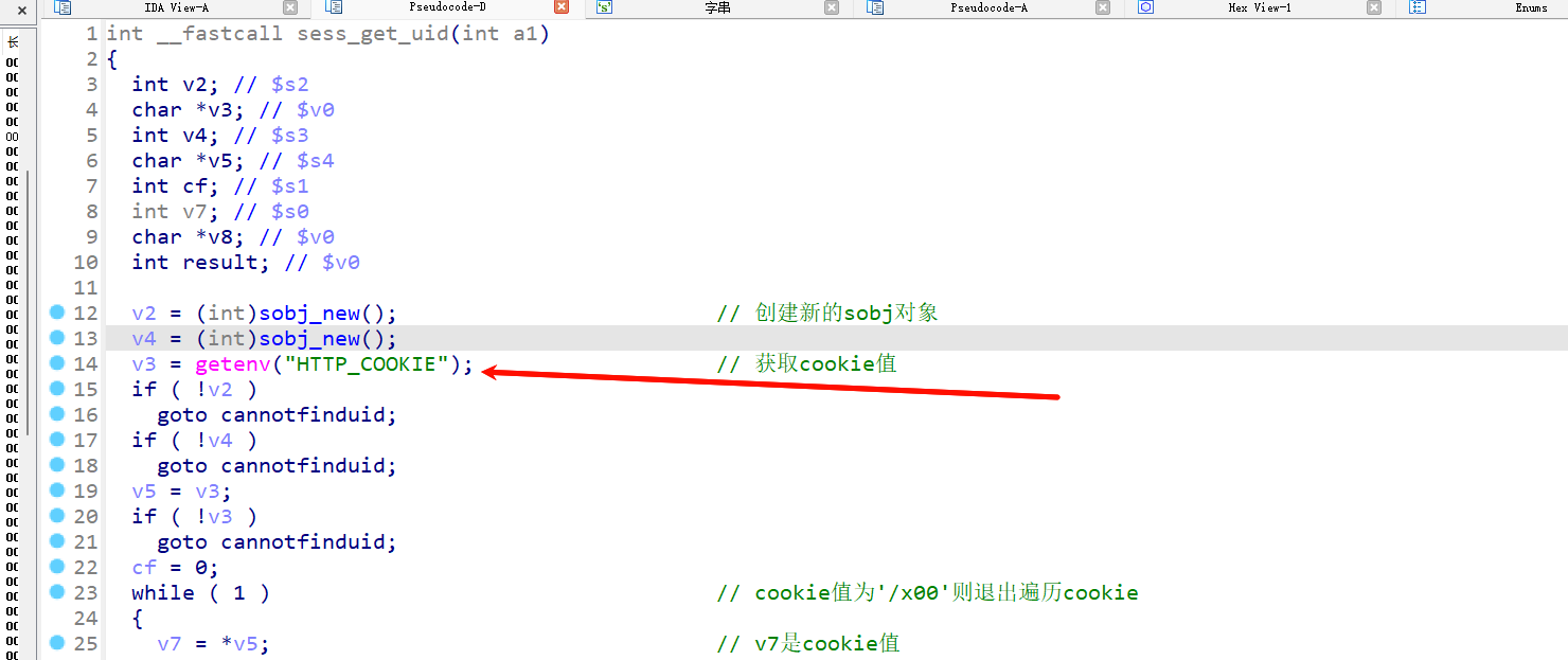 查询HTTP_COOKIE字符串可知,只有sess_get_uid函数引用