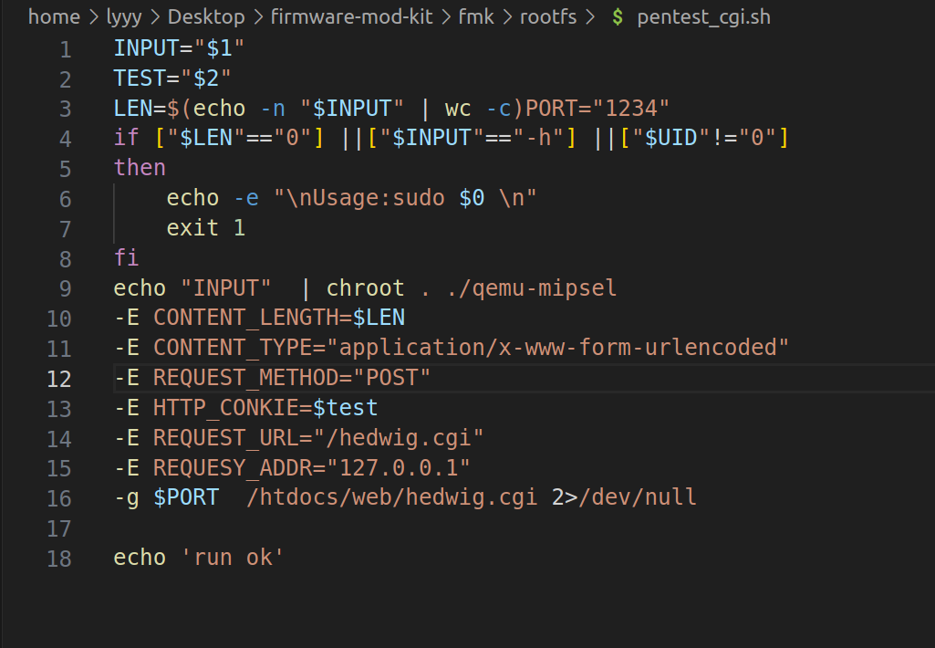 sudo chroot . ./qemu-mipsel-static -E CONTENT_TYPE="application/x-www-form-urlencoded" -E HTTP_CONKIE=$test -E CONTENT_LENGTH =$len -E REQUEST_URL="/hedwig.cgi" -E REQUEST_METHOD="POST" -E REQUESY_ADDR="127.0.0.1" -g $debug_port /htdocs/web/hedwig.cgi