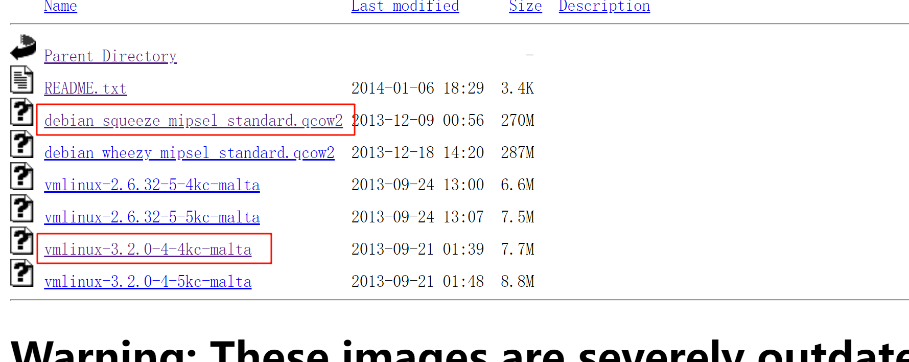 使用qemu-system-mipsel从系统角度进行模拟,就需要一个mips架构的内核镜像和文件系统。可以在如下网站下载: