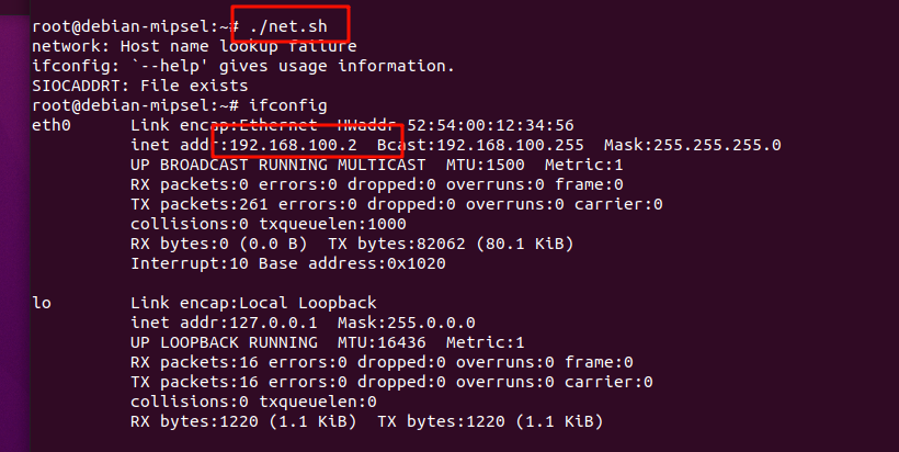 ifconfig eth0 192.168.100.2 netmask 255.255.255.0