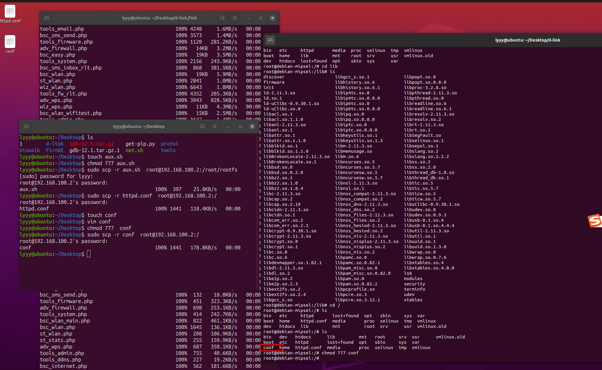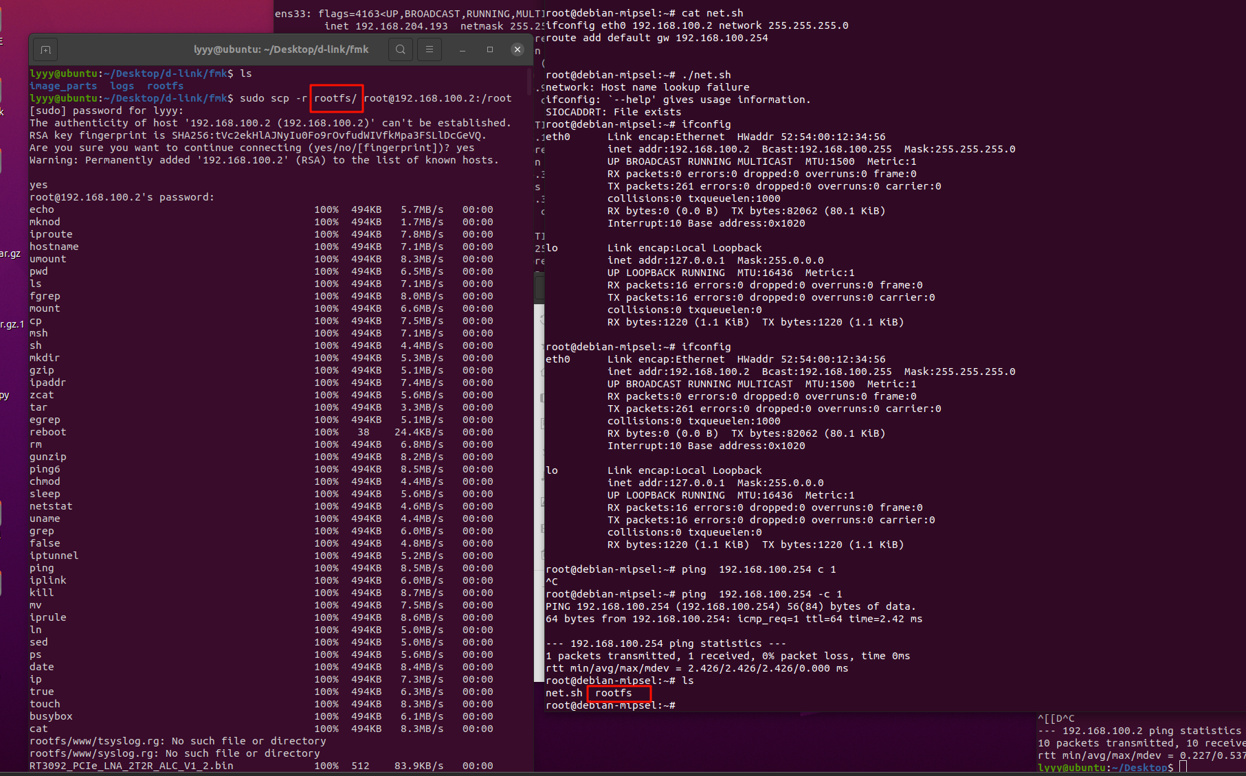 sudo scp -r rootfs/ root@192.168.100.2:/root