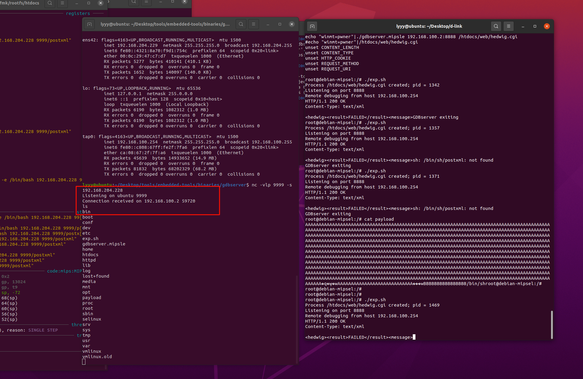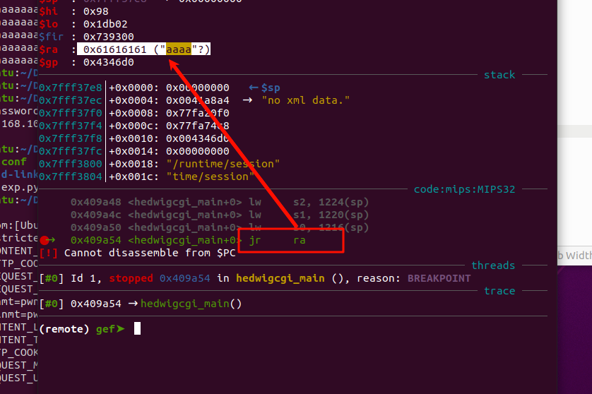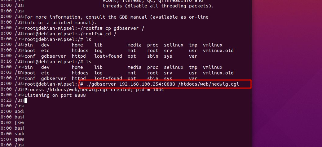 ./gdbserver.mipsle 192.168.100.2:8888 /htdocs/web/hedwig.cgi