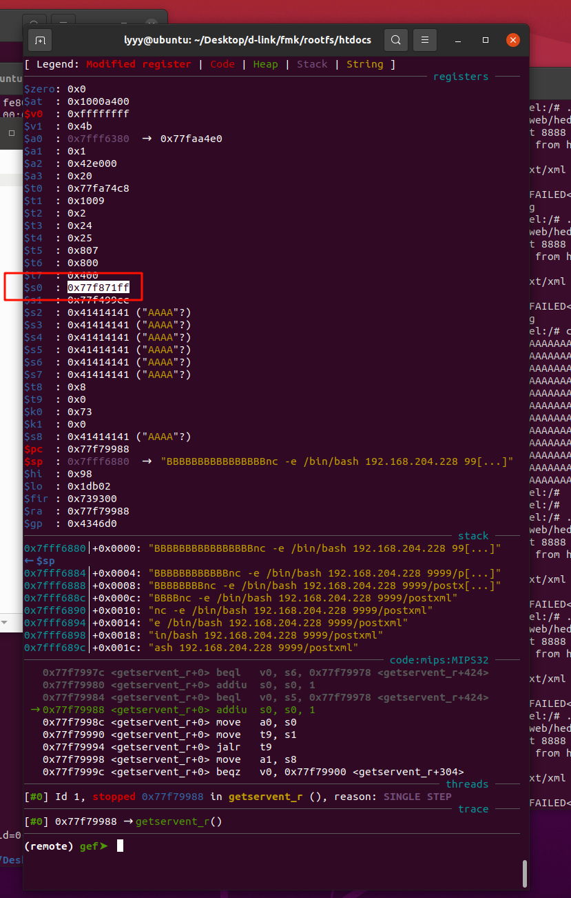 0x77f79988 <getservent_r+0> addiu s0, s0, 1